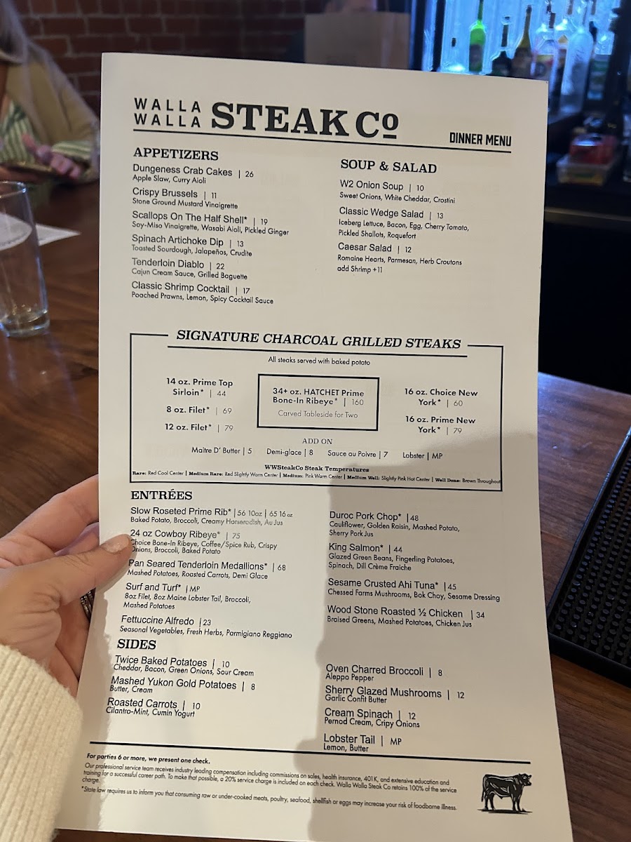 Introducing the menu at Walla Walla Steak Company, where culinary excellence meets warm hospitality in the heart of Walla Walla, WA. This establishment is renowned for its expertly crafted steak dishes, including the impressive 16 oz. New York Prime and the tableside carved 34 oz. The Hatchet Bone-in Prime Ribeye. Each steak is a testament to quality, perfectly cooked to melt-in-your-mouth perfection.
